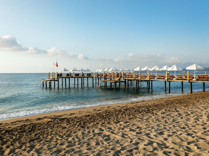 Denize sıfır konumdaki tesisin 180 m. uzunluğunda İnce kum, plaj ve iskelesi bulunmaktadır.( Deniz girişi çakıl taşlı). Plaj şemsiyesi, şezlong, plaj havlusu ve minder havuz başında ve plajda ücretsiz verilmektedir”