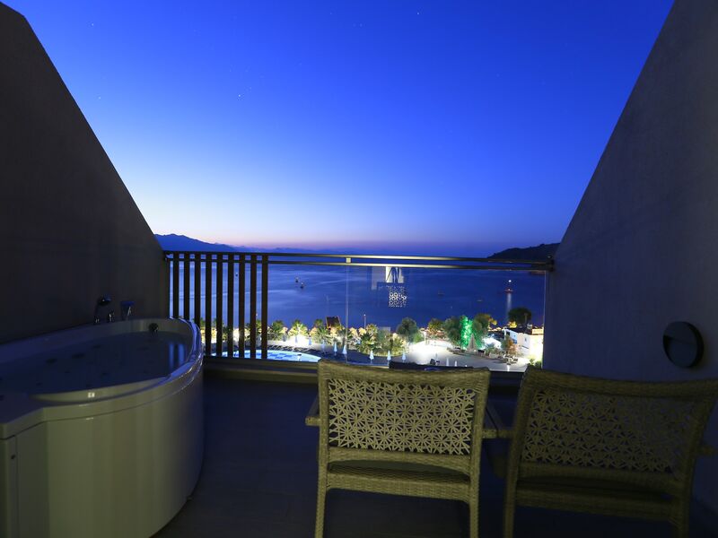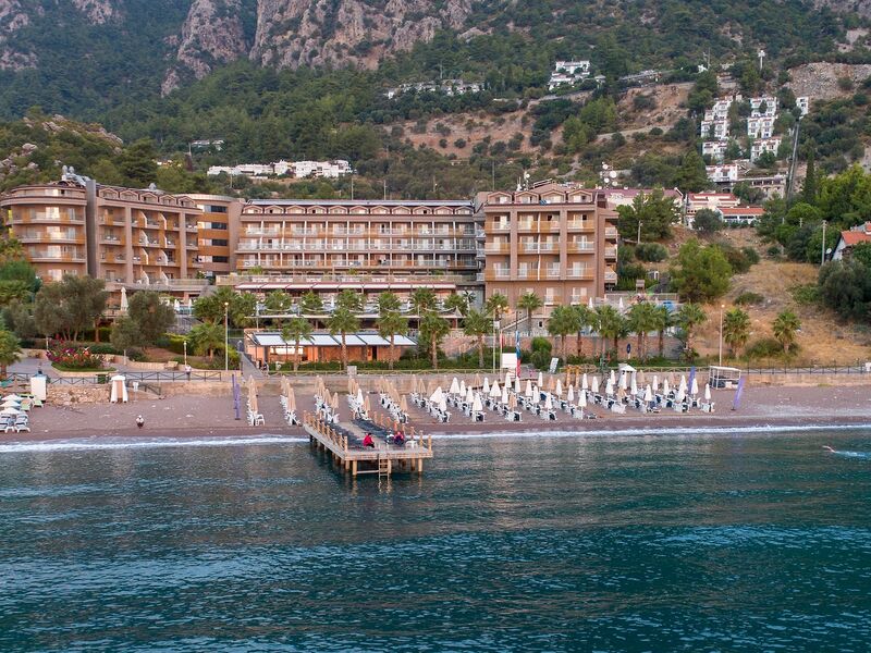 Denize sıfır konumdaki tesisin özel plajı ve iskelesinde Marmaris’in eşsiz doğasının ve denizinin tadını doyasıya çıkarabilirsiniz.Tesiste ayrıca yetişkinler ve çocuklar açık ve kapalı havuzlar da bulunuyor. Misafirlerini deniz, yandan deniz ve kara manzaralı oda seçenekleri ile ağırlayan tesisin odalarında; balkon, merkezi klima, uydu yayını, TV, kablosuz internet, saç kurutma makinesi, minibar, su ısıtıcısı gibi olanaklar mevcut.