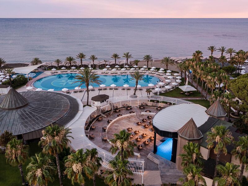 Sabah, öğle ve akşam açık büfe yemekler ücretsiz. Tesisin belirlemiş olduğu markalar dahilinde bazı yerli ve yabancı, alkollü ve alkolsüz içecekler 7/24 saatleri arası ücretsiz. A la carte restoranlar rezervasyonlu ve kuver ücretli. 3 - 7 gece ve üzeri konaklamalarda 1 a la carte restoran, 8 - 15 gece ve üzeri konaklamalarda 2 a la carte restoran, 16 gece ve üzeri konaklamalarda 4 a la carte restoran bir kez rezervasyonlu ve ücretsiz. İlave a la carte kullanımı kişi başı 10 euro olarak ücretlendiriliyor. (Aynı restoranın 2. kez kullanımında bu fiyat geçerlidir.) 6 - 12 yaş arası çocuklar için 2. kez a la carte kullanımı kişi başı 5 euro olarak ücretlendiriliyor. 0 - 6 yaş arası çocuk menüsü Her Şey Dahil konsepti içindedir. King Suite, Deluxe ve Presidential Villa konaklamalarında, sınırsız a la carte kullanımı imkanı sunuluyor. Steak & Wine A la Carte Restoran, gecelemeden bağımsız olarak ücretlidir.